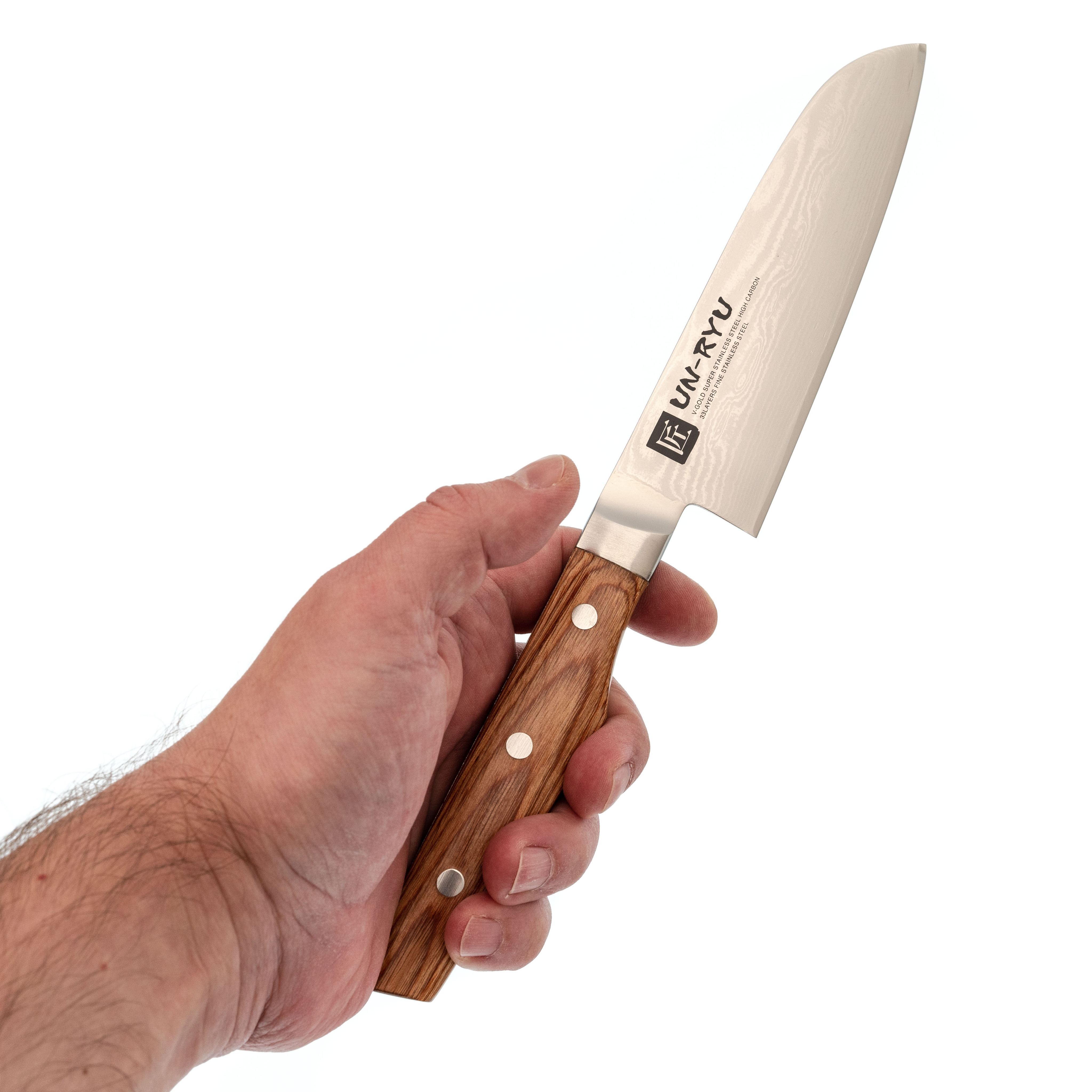 - Ламинат с сердечником из VG-10 - твёрдая японская сталь держит агрессивную остроту, хорошо переносит тонкую заточку и долго остаётся рабочей даже при активной готовке.