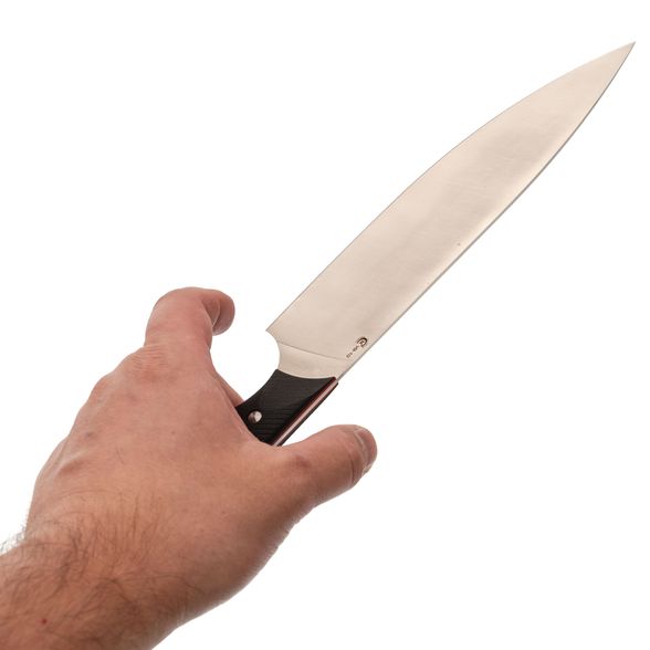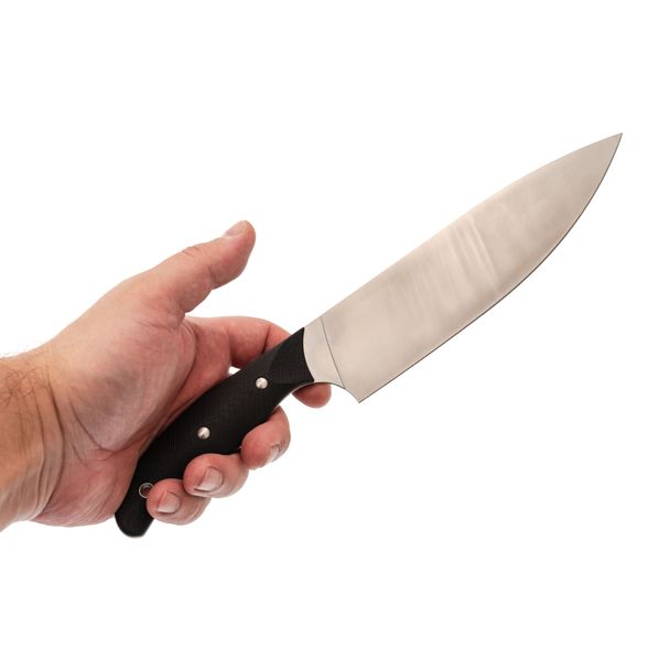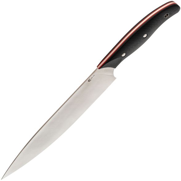 Рукоять изготовлена из стеклотекстолита G10, материала, который идеально подходит для кухонных ножей. Он отличается высокой прочностью и устойчивостью к влаге и агрессивным средам, что важно при использовании на кухне. Текстурированная поверхность рукояти обеспечивает надежный и комфортный хват, позволяя уверенно и безопасно работать с ножом. Этот нож станет надежным инструментом, который облегчит процесс приготовления пищи и подарит удовольствие от работы на кухне.
