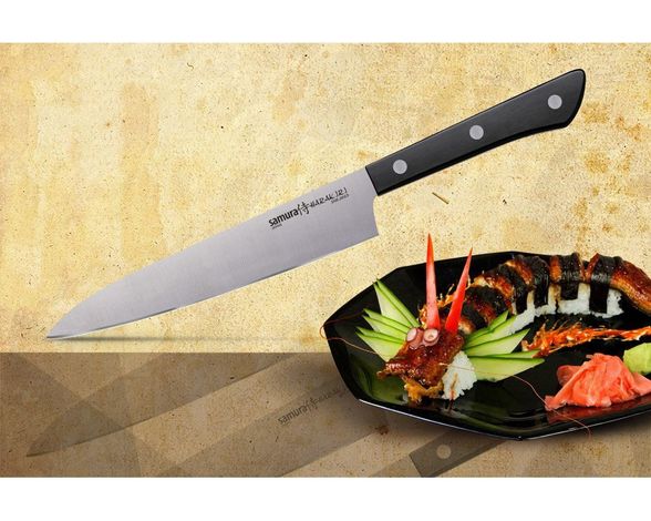 Легкий и многофункциональный универсальный нож - самый популярный инструмент на домашней и профессиональной кухне, используется для резки небольших овощей и фруктов, сыра, колбас. Японская нержавеющая cталь AUS-8, из которой изготовлен нож, обладает хорошей коррозионной устойчивостью, отличной стойкостью режущей кромки, легко полируется и шлифуется. Рукоять ножа, выполненная из ABS пластика, удобно лежит в руке, не скользит, не боится влаги и перепадов температуры, устойчива к любым агрессивным средам. Samura "Harakiri" - легкие, удобные, отличные помощники на домашней кухне.