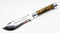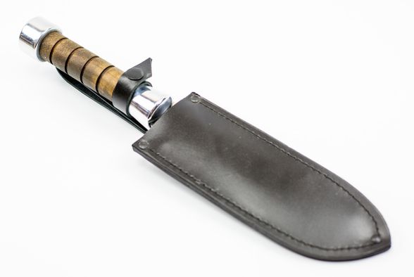 Нож с фиксированным клинком ЛЕГИОН представляет собой универсальный походный инструмент, который совмещает в себе функции большого лагерного ножа, мачете и саперной лопатки. Рукоять ножа обеспечивает уверенное удержание ножа при выполнении различных видов работы. С помощью ножа вы легко прорубите проход среди кустов или тропинку среди камышей. Нож легко рубит ветки хвойных и лиственных деревьев. В случае необходимости нож можно использовать для рубки небольших деревьев. Геометрия ножа позволяет колоть дрова и строгать сухую древесину. Для удобного ношения в полевых условиях нож комплектуется чехлом из натуральной кожи.
