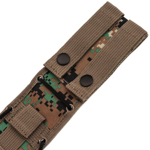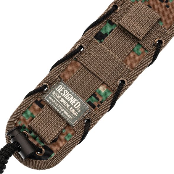 Ножны изготовлены из качественного пластика и обтянуты кордуровым чехлом, который не только защищает ножны от повреждений, но и делает его легким в использовании благодаря возможности подвесить свой инструмент как на пояс, так и на разгрузку – всегда имея его под рукой. Надежные материалы гарантируют долгий срок службы без потерь эксплуатационных свойств.
