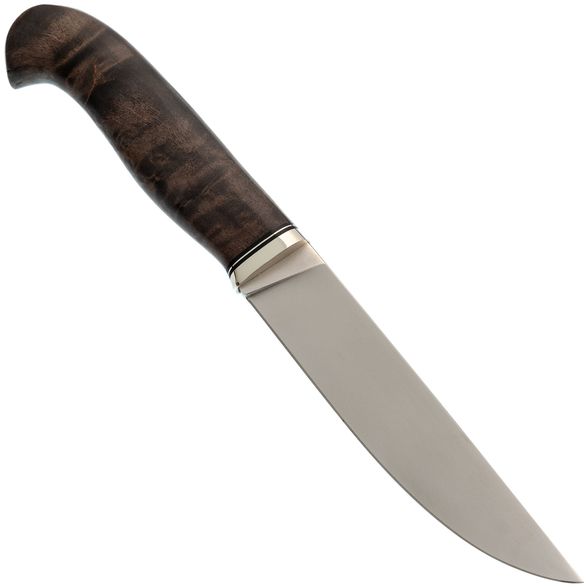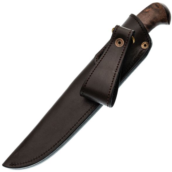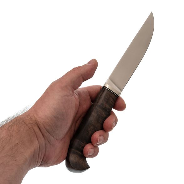 - Рукоять выполнена из стабилизированной карельской берёзы тёплого коричневого оттенка. Благодаря глубокой стабилизации древесина не боится влаги и температурных перепадов, сохраняя форму и внешний вид даже при длительном использовании.