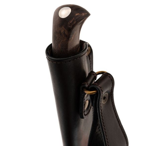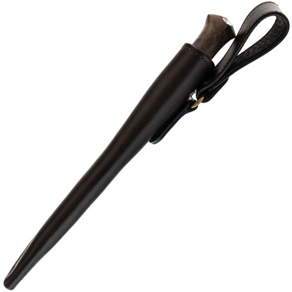 В комплекте с ножом идут тщательно изготовленные ножны из кожи растительного дубления — материала, который славится своей прочностью, долговечностью и благородным внешним видом. Такая кожа со временем приобретает естественную патину, становясь только красивее при эксплуатации.