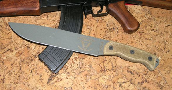 Нож "RTAK II Canvas Micarta Handle", сталь 1095, клинок серый, рукоять с отверстием (бежевая микарта).