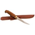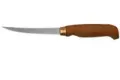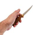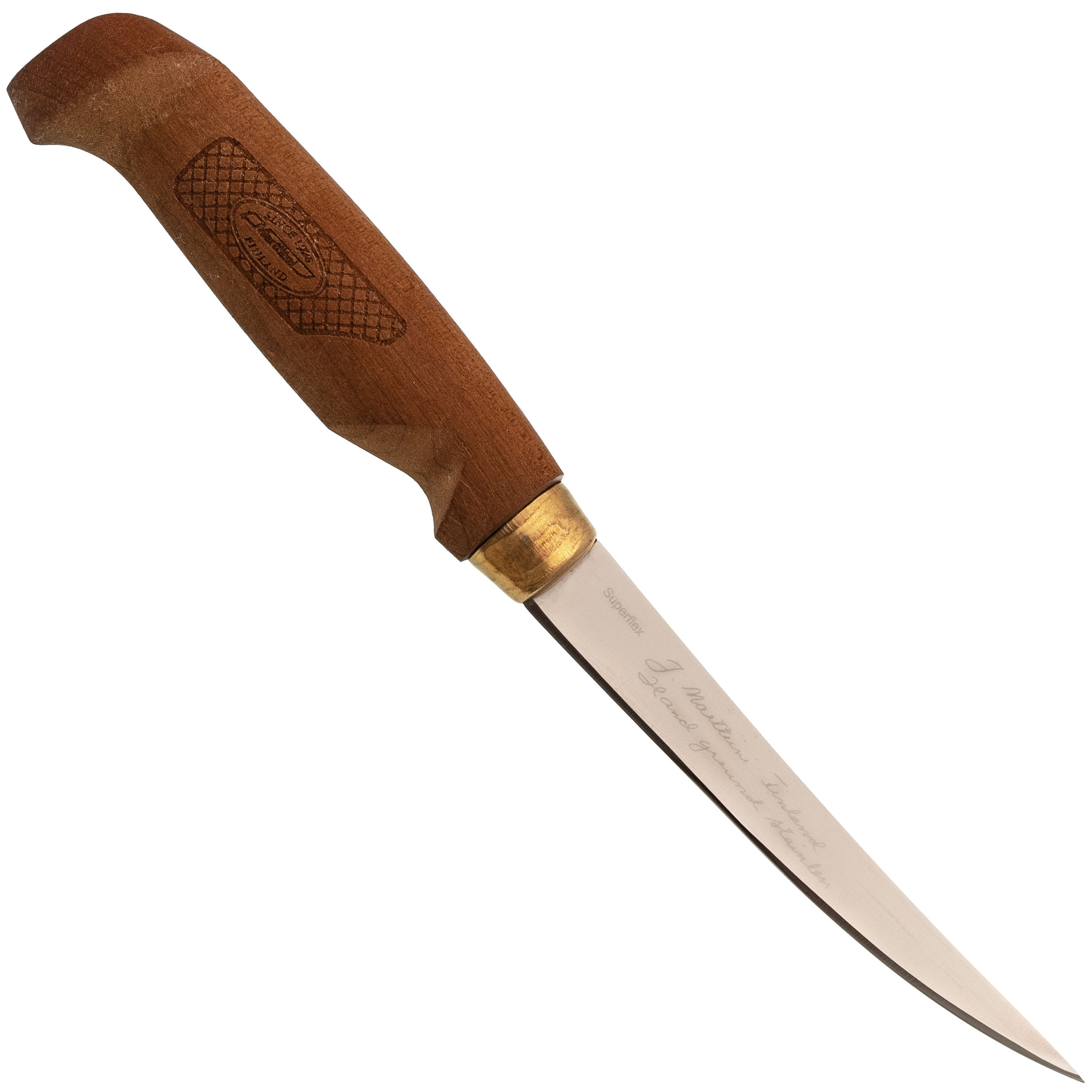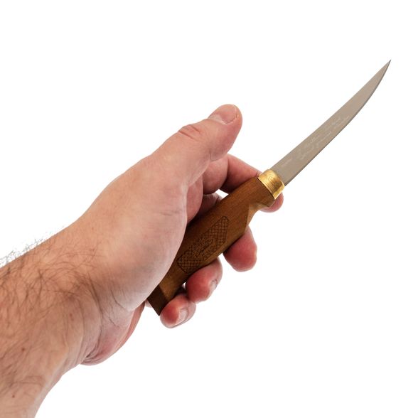 Marttiini SUPERFLEX в версии с коротким клинком - это удобный малый филейный нож для тех случаев, когда нужна точность на небольшом масштабе. При длине клинка всего 10 см и общей длине около 20 см он идеально подходит для мелкой рыбы, где важнее аккуратное движение, чем длинный проходящий рез. Такой формат заметно облегчает работу с продуктом: нож не цепляется, не мешает маневрировать и даёт отличный контроль на тесной разделочной доске.