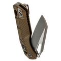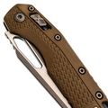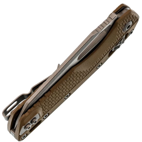 Рукоять ножа изготовлена из высокопрочного полимера, обеспечивающего долговечность и устойчивость к механическим воздействиям. Встроенные стальные лайнеры придают рукояти дополнительную жёсткость, гарантируя уверенный и надёжный захват. Надёжный замок RAM-LOK с фирменной кнопкой X на обеих сторонах обеспечивает безопасное открытие и закрытие ножа, а также титановой спейсер и съёмная клипса позволяют адаптировать его для ношения в левом или правом кармане, делая инструмент максимально универсальным.
