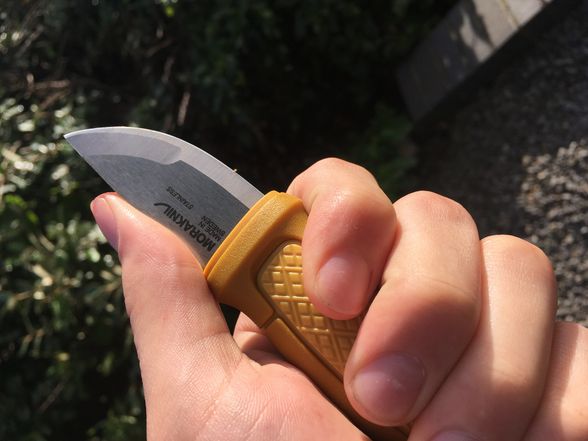 Рукоятка же в данной модели изготавливается из пластика. Она имеет удобную для захвата форму и текстурную поверхность, а потому Morakniv Eldris не будет скользить в ладони во время работы и позволит любую работу выполнить легко и быстро.