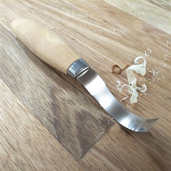 Двусторонний нож-ложкорез Hook Knife 163 Double Edge от компании Morakniv представляет собой столярный инструмент с крюкообразным лезвием. Предназначен для изготовления выемок в деревянных ложках, чашах и прочих изделиях из дерева исключительно ручным способом. Бочкообразная рукоять из карельской березы удобно ложится в руку мастера.