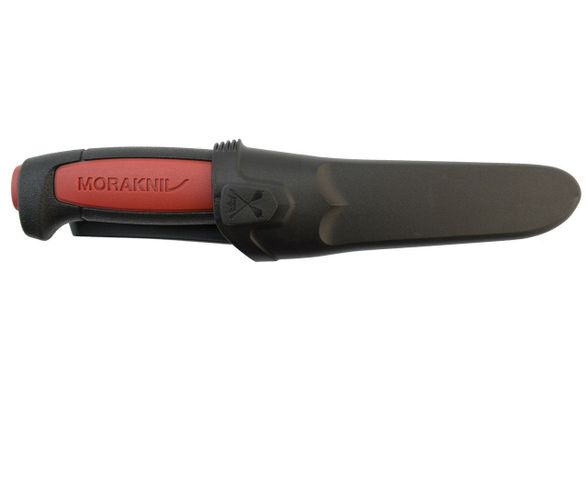 Нож Morakniv Pro C, углеродистая сталь относится к нескладному типу ножей. Его лезвие с прямой заточкой имеет форму drop-point. Благодаря этому многоцелевой нож Mora Pro C может одинаково хорошо резать и колоть. Высокая ударопрочность и износостойкость достигается благодаря сплаву нержавеющей стали с углеродом. Такой состав рекомендуется вытирать насухо после использования во влажных условиях. Рукоять выполнена из пластика необычного красного цвета, для лучшей фиксации в руке поверх пластика находятся резиновые накладки, увеличивающие трение. Нож укомплектован надежными пластиковыми ножнами с возможностью крепления на поясе.
