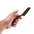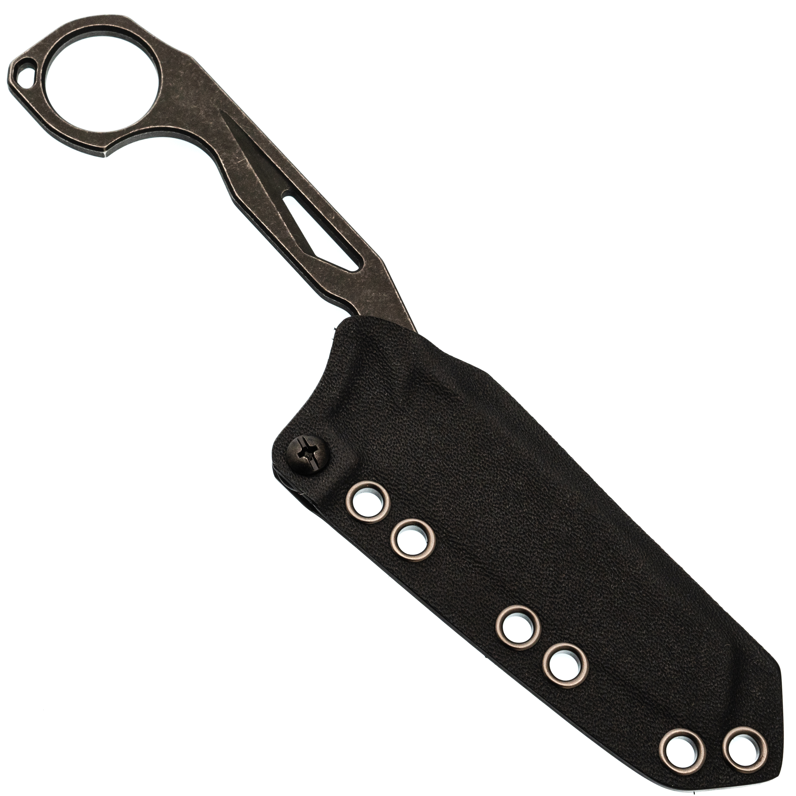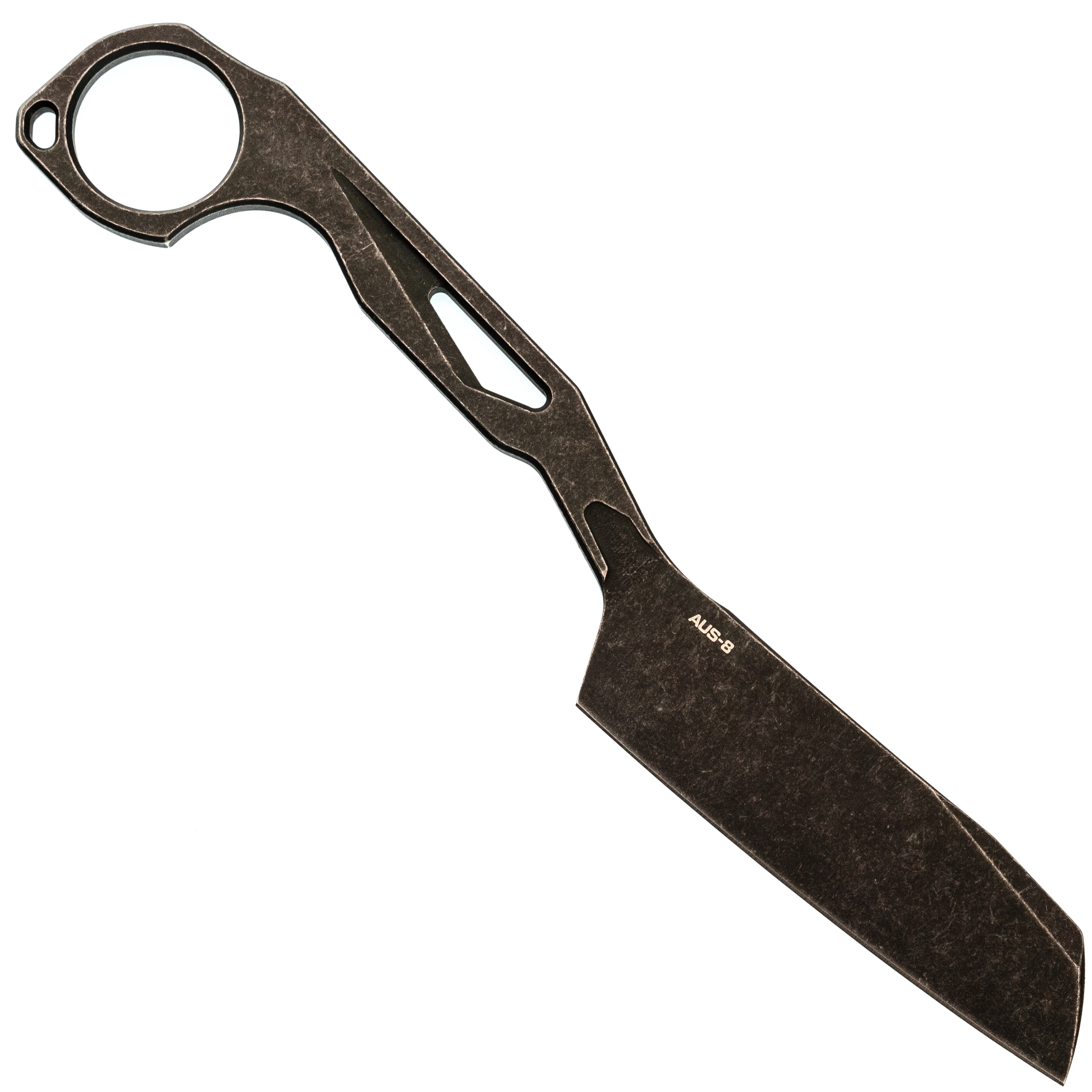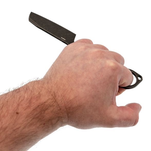 Рукоять - это сам хвостовик. Текстура стали обеспечивает сцепление, но для силовых работ ладонь быстро устанет. Зато в носке нож почти невесомый и не пачкается кровью от пальмовых листьев. С кольцом, как у керамбитов, хват становится интереснее - мизинец фиксируется, и контроль над ножом при точных движениях возрастает.