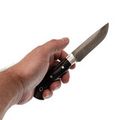 Клинок МТ-52 выполнен с вогнутыми спусками, что даёт отличное сочетание прочности и высокой режущей способности. Небольшие размеры делают его удобным для точных операций, таких как разделка пищи или работы с мелкими предметами. Спуски начинаются от середины клинка, что способствует отличному балансу и повышает эффективность при резке.