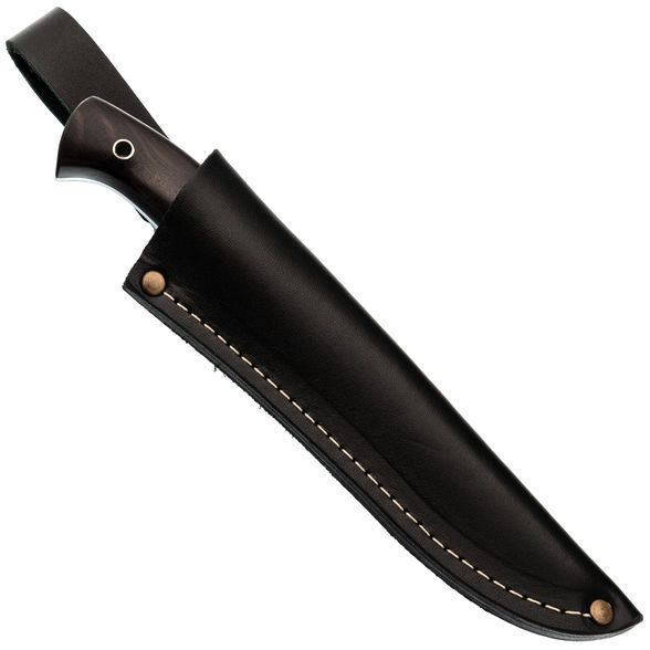 Кожа: Ножны выполнены из прочной кожи, что придаёт им долговечность и стильный внешний вид. Погружная конструкция надёжно фиксирует клинок, предотвращая случайное выпадение.