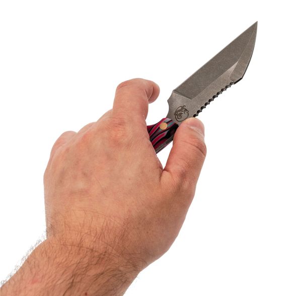Рукоять: многослойная микарта в розовом, чёрном, белом и синем цветах обеспечивает привлекательный внешний вид и долговечность.