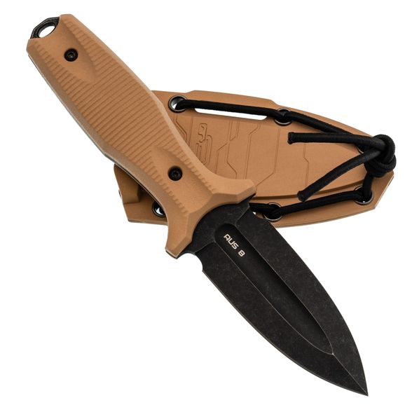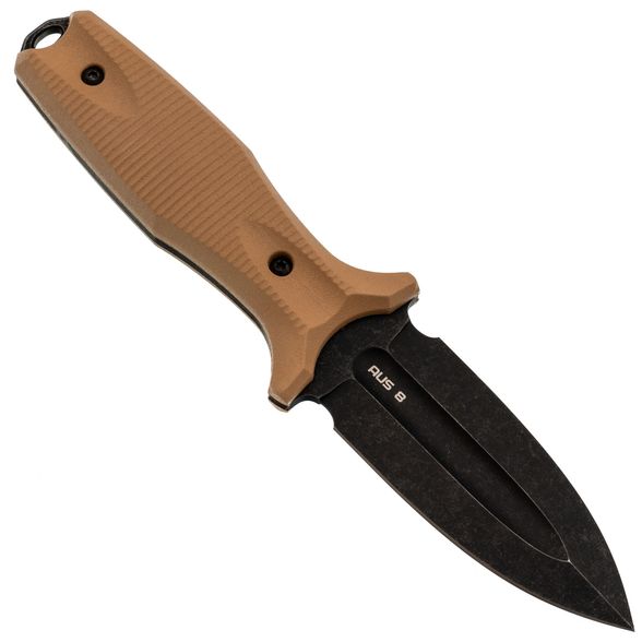 Лезвие изготовлено из стали AUS-8, материала, славящегося своей способностью сохранять остроту и устойчивость к коррозии. Эти свойства делают его незаменимым для тактических ножей, где требуется баланс между твердостью и гибкостью клинка. Широкий кинжальный профиль дополнительно обеспечивает превосходное проникновение и эффективность при любых сценариях использования.