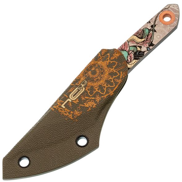Клинок выполнен из проверенной временем стали AUS-8 — она известна хорошим балансом между стойкостью режущей кромки и лёгкостью заточки. Для ножен выбран современный материал Kydex, который обеспечивает надёжную фиксацию ножа и лёгкое извлечение.