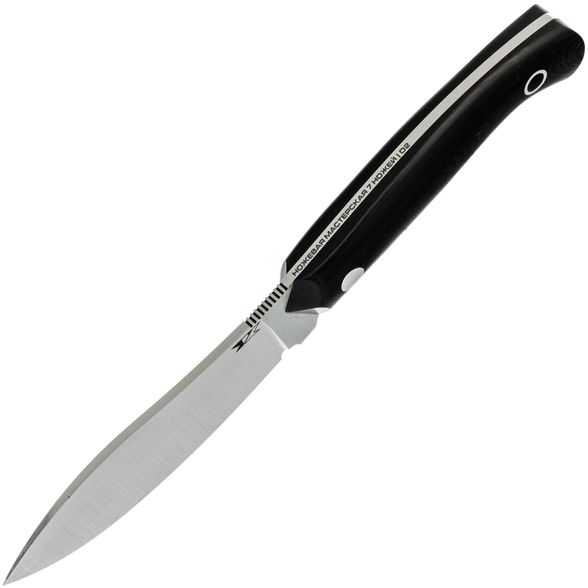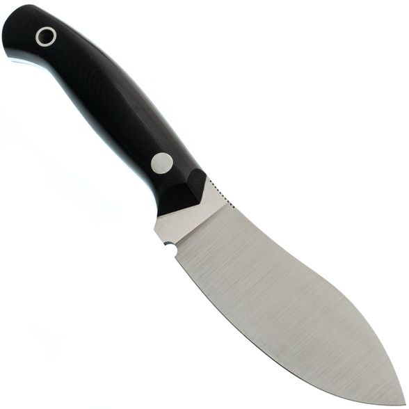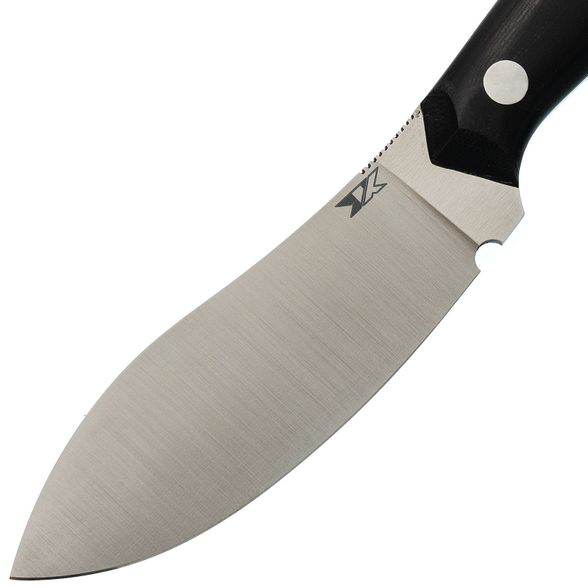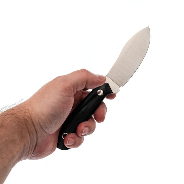 Клинок изготовлен из стали D2, которая отличается высокой производительностью и продолжительным удержанием остроты. Это позволяет ножу без труда справляться с разделочными работами во время охоты. Прямые спуски от обуха обеспечивают отличные режущие свойства и делают нож удобным для строгания. Все ножи мастерской затачиваются вручную, благодаря чему изделие готово к использованию сразу после покупки и не требует дополнительной заточки.