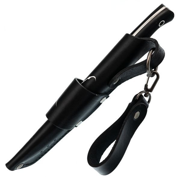 Рукоять ножа выполнена из стеклотекстолита G10 — материала, устойчивого к влаге, температурным перепадам и механическим воздействиям, что делает его идеальным выбором для походных условий. G10 не выцветает и легко чистится, сохраняя внешний вид даже после длительного использования. Эргономичная изогнутая форма рукояти и темлячное отверстие обеспечивают удобство и надежный хват. Накладной монтаж придает ножу дополнительную прочность.
