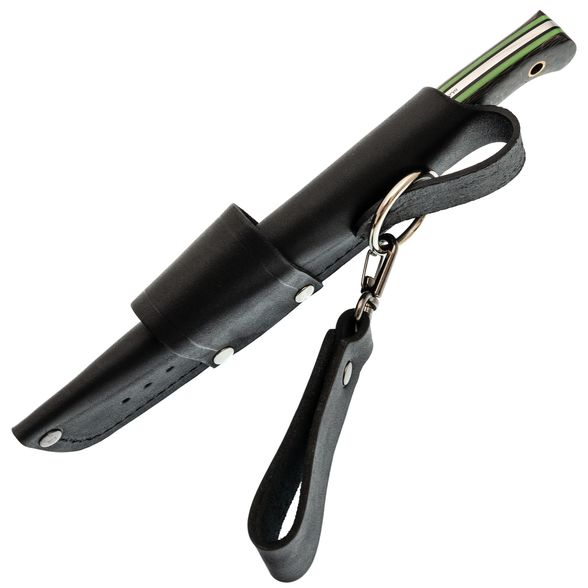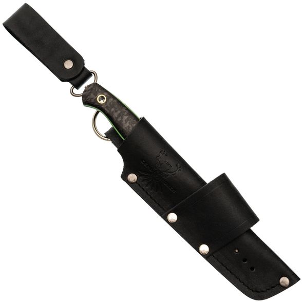 Ножны, дополняющие нож Нессмук, изготовлены из толстой натуральной кожи и тщательно прошиты, что обеспечивает их долговечность. Они предлагают три варианта подвеса: свободный, жесткий и горизонтальный, что позволяет легко адаптировать нож к различным ситуациям. Конструкция ножен погружная, что обеспечивает надежное удержание ножа, даже если он находится в ножнах вниз рукоятью. Нож Нессмук от Семь Ножей - это сочетание функциональности и стиля, идеально подходящее для тех, кто ценит как качество, так и уникальный дизайн.