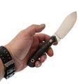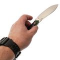 Клинок ножа изготовлен из высококачественной стали N690, которая известна своей способностью удерживать заточку и сопротивляться коррозии. Благодаря криогенной обработке, примененной производителем, сталь раскрывает свой полный потенциал. Необычная форма клинка делает нож Нессмук универсальным инструментом, подходящим как для охоты, так и для походов. Прямые спуски от обуха обеспечивают отличную режущую способность, что характеризует его как надежного помощника в любых условиях.