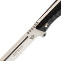 Клинок изготовлен из стали AUS-8, которая является отличным выбором для ножей, используемых в полевых условиях. Эта сталь обладает высокой ударной вязкостью и хорошим сопротивлением коррозии, что обеспечивает надежность и долговечность. AUS-8 легко поддается заточке, что позволяет поддерживать остроту лезвия в любых условиях. Геометрия клинка представляет собой форму Spear-Point с высокими прямыми спусками, что обеспечивает эффективное резание и колющие действия. Толщина клинка 4,5 мм позволяет справляться с тяжелыми нагрузками, делая нож пригодным для различных задач.