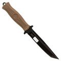 Нож НР с длиной клинка 14 см и сталью AUS-8 обеспечивает прочность и долговечность. Рукоять выполнена из материала эластрон, что гарантирует захват и устойчивость в руке. В комплект входят ножны.