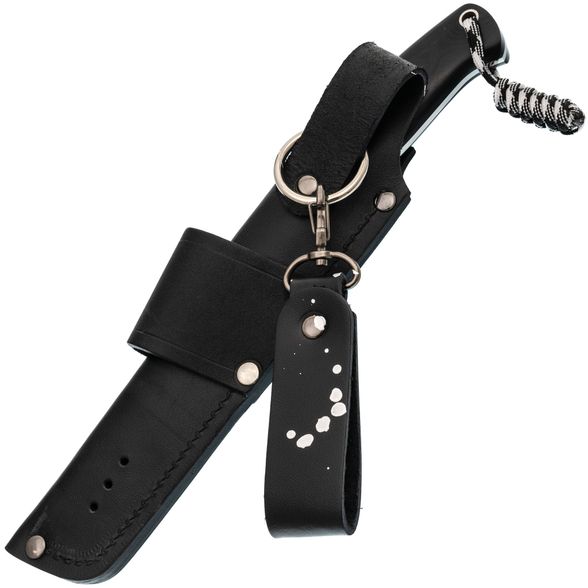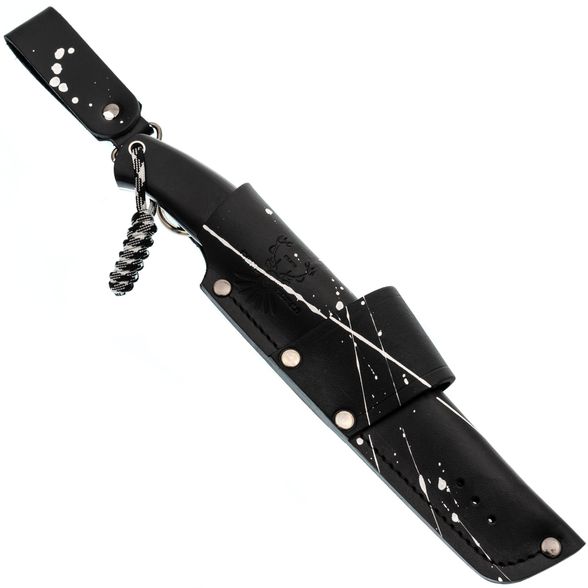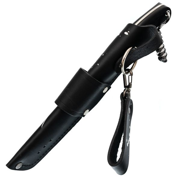 Ножны изготовлены из натуральной кожи высокого качества, что гарантирует долговечность и защиту ножа. Они оснащены свободным подвесом для удобства ношения. Такое сочетание позволяет надежно хранить нож и обеспечивает его доступность в любых условиях.