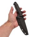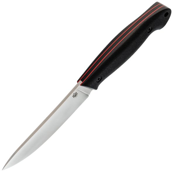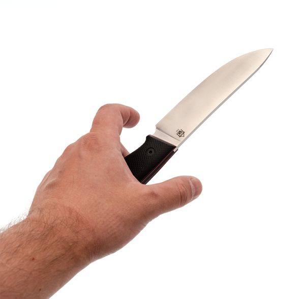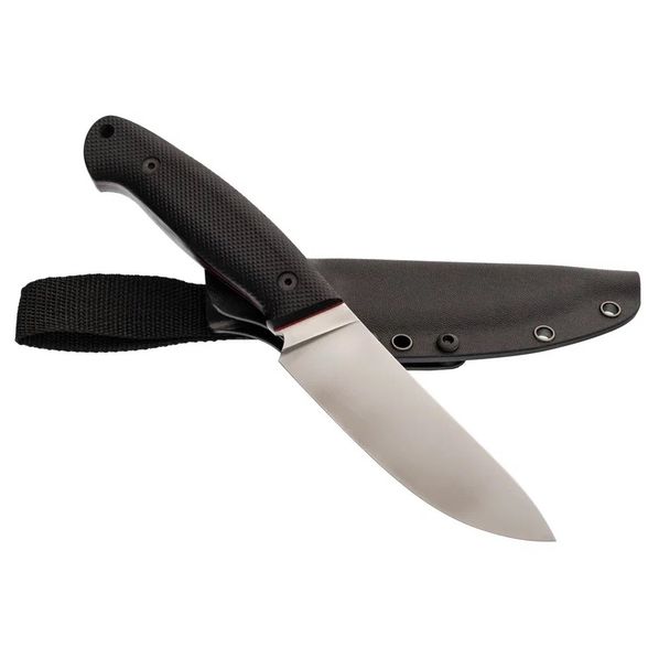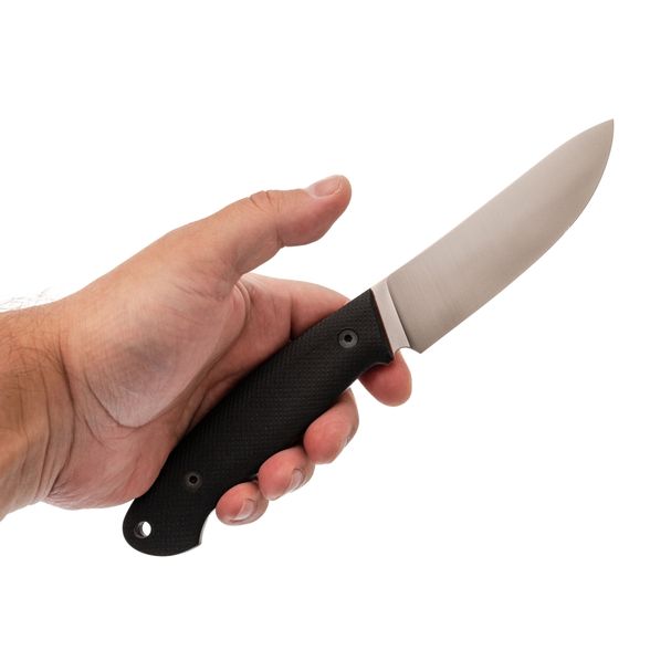- Продуманный дизайн рукояти: Стеклотекстолит G10, из которого изготовлена рукоять, обеспечивает надежный хват и неприхотливость к условиям окружающей среды.