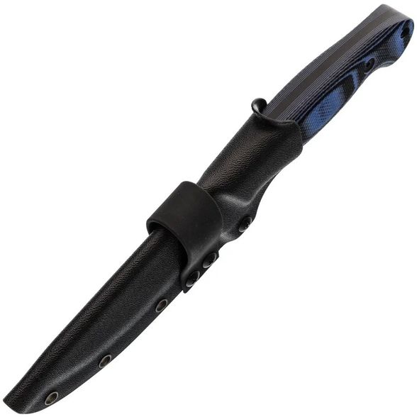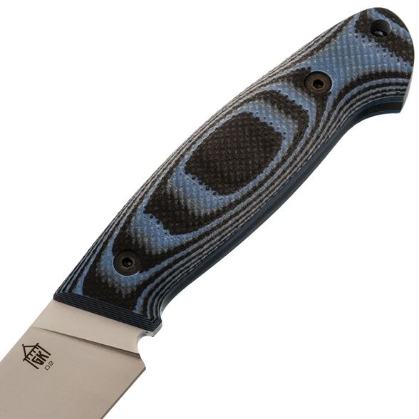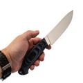 - Продуманный дизайн рукояти: Стеклотекстолит G10, из которого изготовлена рукоять, обеспечивает надежный хват и неприхотливость к условиям окружающей среды.
