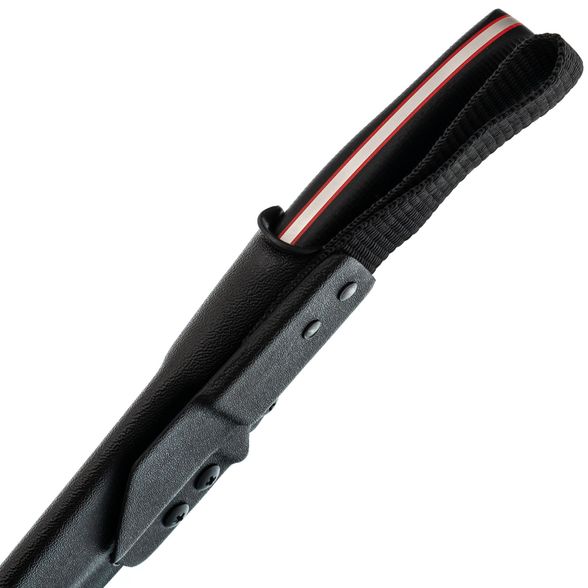 Ножны, изготовленные из кайдекса, обеспечивают безопасное и удобное ношение ножа. Этот материал позволяет создавать точную форму для ножа, обеспечивая надежную фиксацию. Конструкция ножен исключает контакт режущей кромки с материалом, предотвращая затупление. Полусвободный подвес из нейлоновой стропы позволяет носить нож в различных положениях, обеспечивая удобство и быстроту извлечения.
