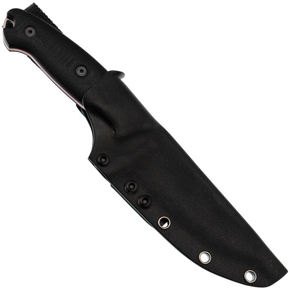 Рукоять из стеклотекстолита G10 делает нож легким и прочным. Красный стеклотекстолит, используемый для проставок, придает ножу яркий акцент и улучшает его визуальный контраст. Эргономичная изогнутая форма рукояти обеспечивает комфортное и надежное удержание, позволяя работать с ножом длительное время без усталости руки.