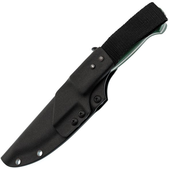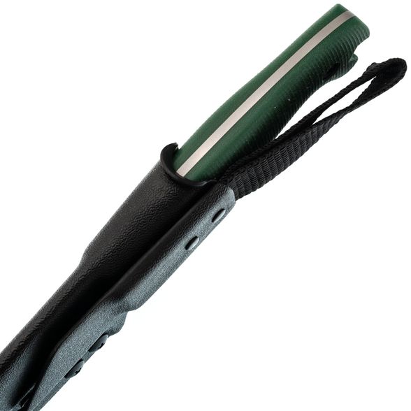 Ножны, в которые нож "Охотник" надежно прячется, выполнены из кайдекса - современного материала, обеспечивающего идеальную форму и фиксацию. Конструкция ножен исключает любые повреждения режущей кромки, а также обеспечивает легкое и бесшумное извлечение ножа. Полусвободный подвес из нейлоновой стропы позволяет носить нож на поясе или рюкзаке в удобном для пользователя положении. Этот подвес гарантирует быстрый доступ к ножу в любой ситуации, что особенно важно во время охоты или при выполнении туристических задач.