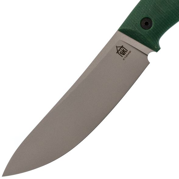 Сердцем ножа является клинок, выполненный из уникальной российской стали Х12МФ, которая обладает исключительными характеристиками. Высокая твердость в 61-62 HRC позволяет этому ножу сохранять остроту на протяжении многих охотничьих сезонов, даже при активном использовании. Форма клинка, вдохновленная традиционными моделями Skinner, включает в себя изгиб режущей кромки, идеальный для ошкуривания, и прямые спуски, обеспечивающие беспрецедентную резкость. Такой дизайн позволяет легко и эффективно разделывать туши животных.