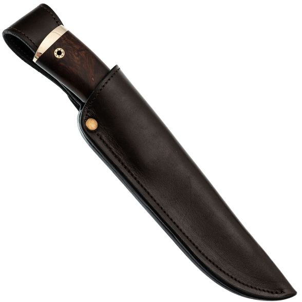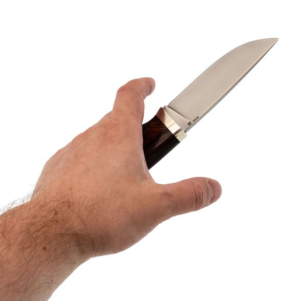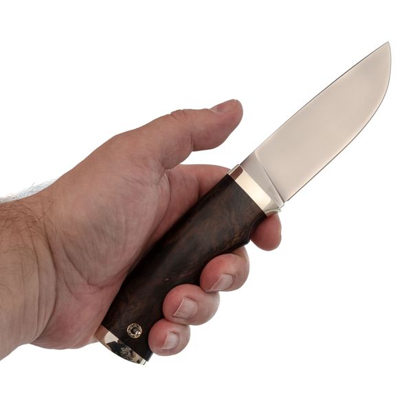 Название этой модели говорит само за себя: "Охотник" - это тот самый нож, который выбирают те, кто знает толк в качественном снаряжении. Каждый экземпляр изготавливается вручную мастером, а потому не существует двух абсолютно одинаковых ножей: небольшие отличия лишь подчёркивают индивидуальность каждого изделия. Благодаря своей сбалансированной геометрии и универсальности, этот нож станет настоящим помощником на любой охоте.