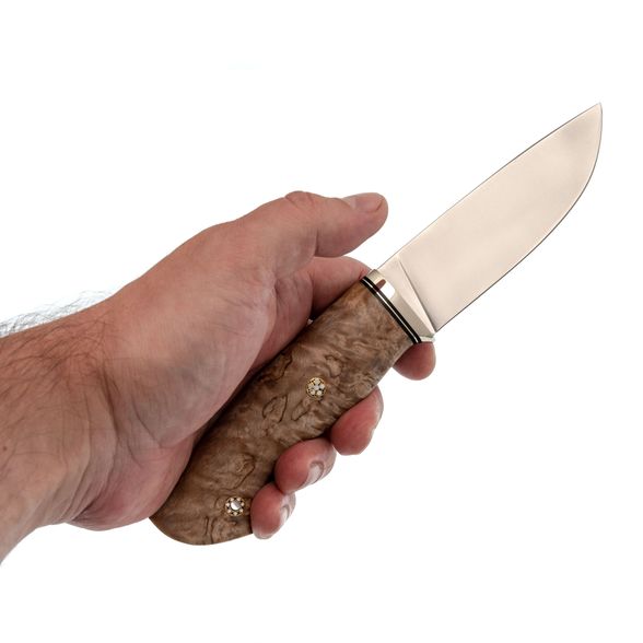 Рукоять: карельская берёза. Уникальная текстура, приятная на ощупь и удивительная устойчивость к износу.