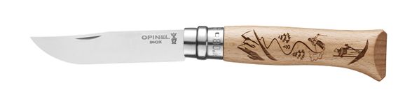 Нож Opinel №8 Alpine adventures, нержавеющая сталь, рукоять дуб, гравировка лыжи