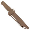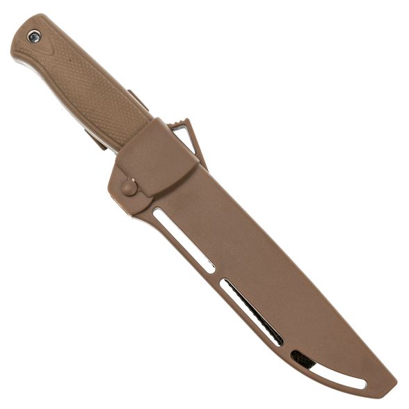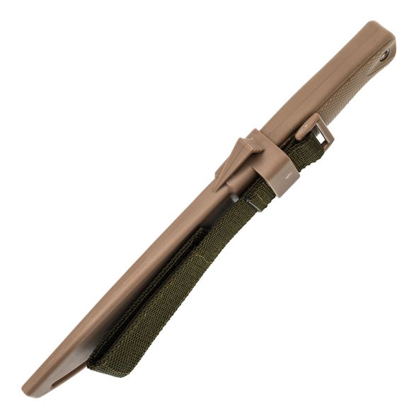 Клинок Otus Tan разработан для ношения на одежде с креплением на ремень, так как с ним в комплекте есть ножны. Крепление выполняется при помощи нейлонового ремня с пластиковой застежкой. Нож обладает следующими особенностями: