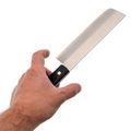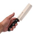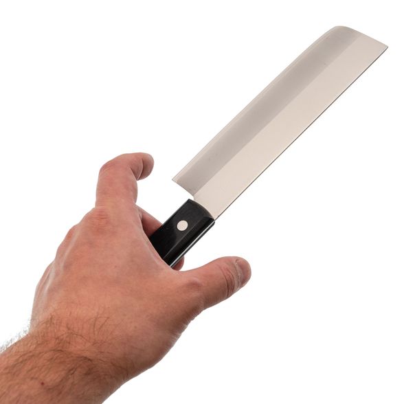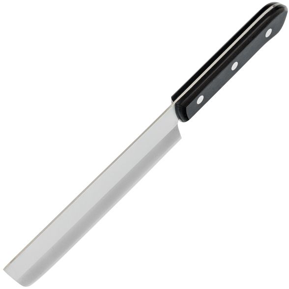 С длиной клинка 165 мм и общей длиной 285 мм, нож Nakiri идеально подходит для точных и быстрых разрезов, делая его особенно удобным для работы с различными овощами. Четкое, прямолинейное лезвие позволяет легко и быстро нарезать овощи на тонкие пластины или кубики, не повреждая их структуру.