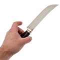 Нож «Пчак» от мастерской Ульданова вдохновлён одноимёнными традиционными узбекскими ножами. Изделие выполнено вручную, что обеспечивает высокое качество исполнения и точное внимание к деталям. Нож предназначен для использования как на кухне, так и в выездных условиях для нарезки продуктов.
