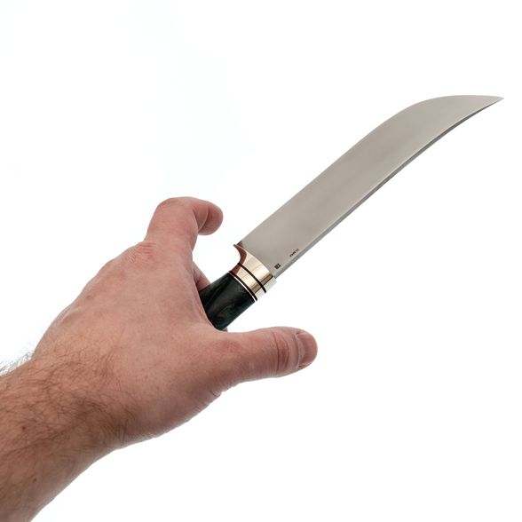 Нож Пчак от мастерской Ульданова представляет собой современную интерпретацию традиционного узбекского ножа. Он изготовлен с использованием премиальных материалов и демонстрирует высокое качество исполнения. Нож подходит как для кухонного применения, так и для работы с продуктами на природе.