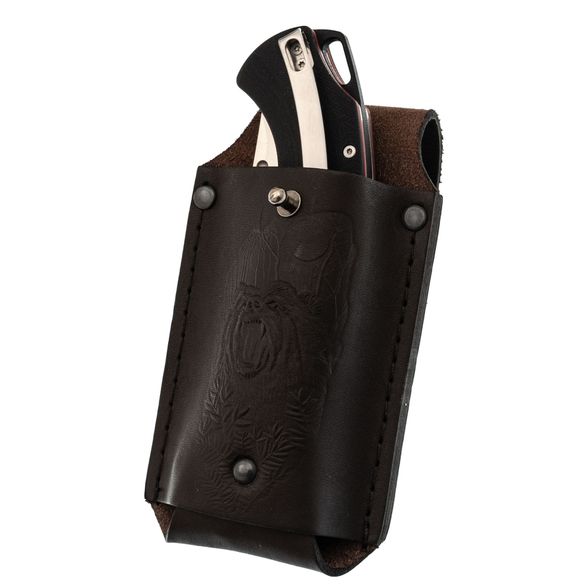 Нож комплектуется чехлом из натуральной кожи, который легко подвешивается на пояс. Чехол обеспечивает удобное и безопасное хранение ножа в походных условиях.