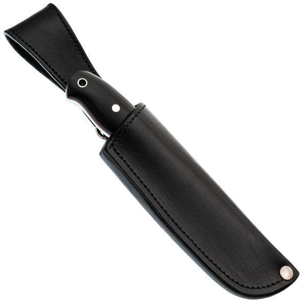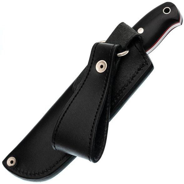 Ножны изготовлены из натуральной кожи высокого качества, что гарантирует их надёжность и долговечность. Для удобства ношения они оснащены свободным, но жёстким подвесом, обеспечивающим стабильное крепление изделия при переноске.