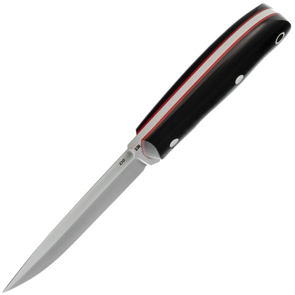 Клинок изготовлен из стали D2 – высокоуглеродистой инструментальной стали, обеспечивающей продолжительное сохранение остроты, сравнимое с характеристиками многих премиальных материалов. Простая и универсальная форма Drop-Point вместе с высокими прямыми спусками гарантирует хорошие режущие свойства при выполнении различных задач.