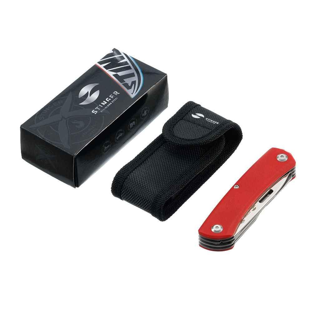 Нож перочинный Stinger 101 мм, 10 функций, сталь D2/420A, рукоять G10, красный