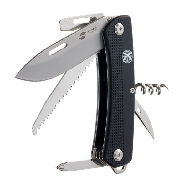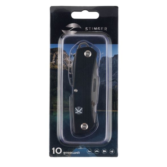 Нож перочинный Stinger 103 мм, 10 функций, черный, в блистере