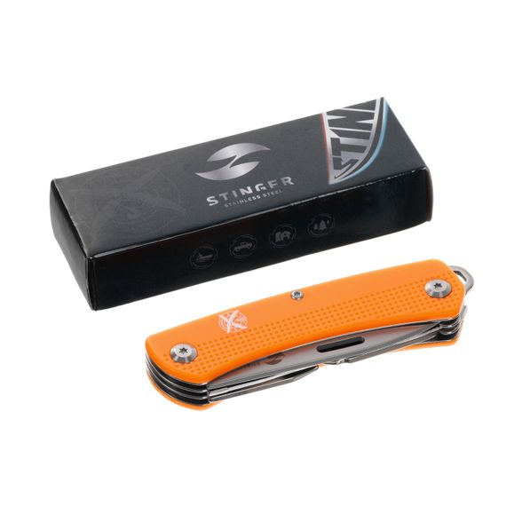 Нож перочинный Stinger 103 мм, 10 функций, оранжевый
