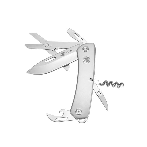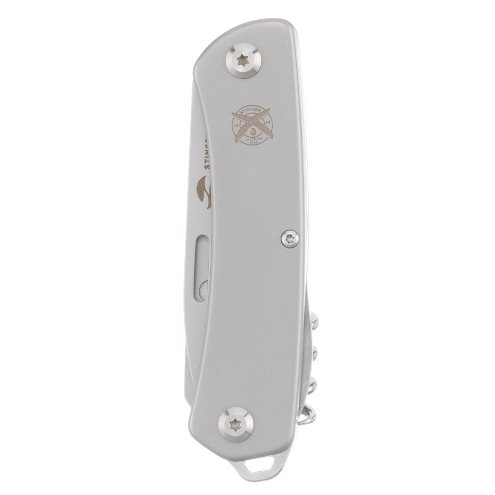 Нож перочинный Stinger 103 мм, 10 функций, рукоять нержавеющая сталь, серебристый