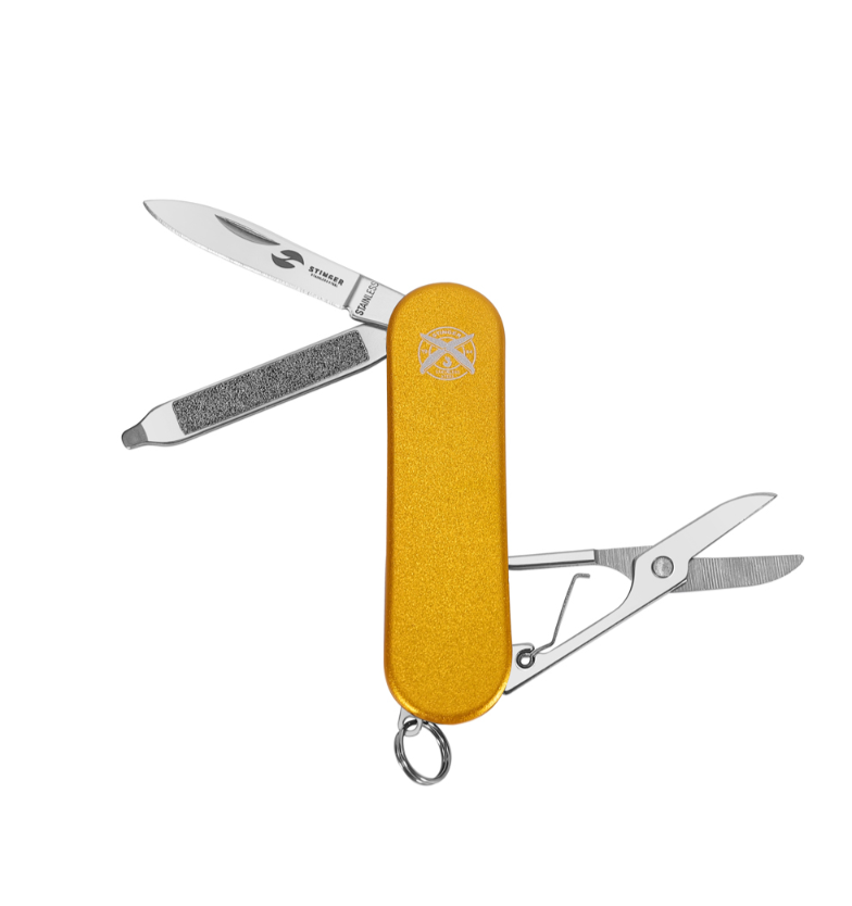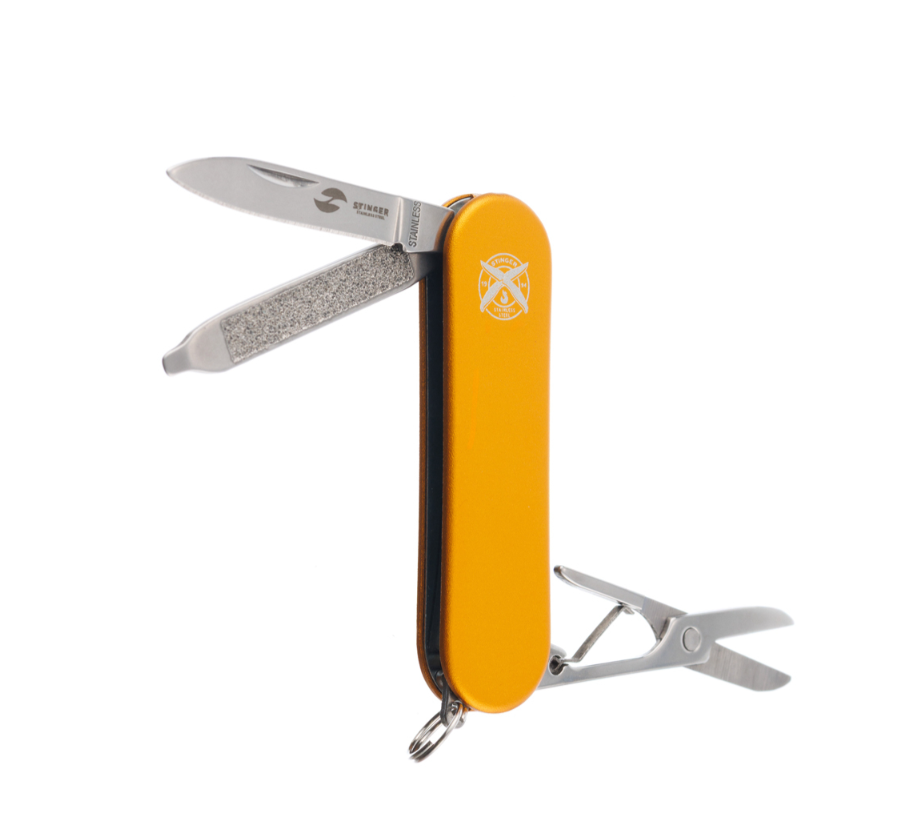 Нож перочинный Stinger 62 мм, 4 функции, рукоять алюминий, золотистый