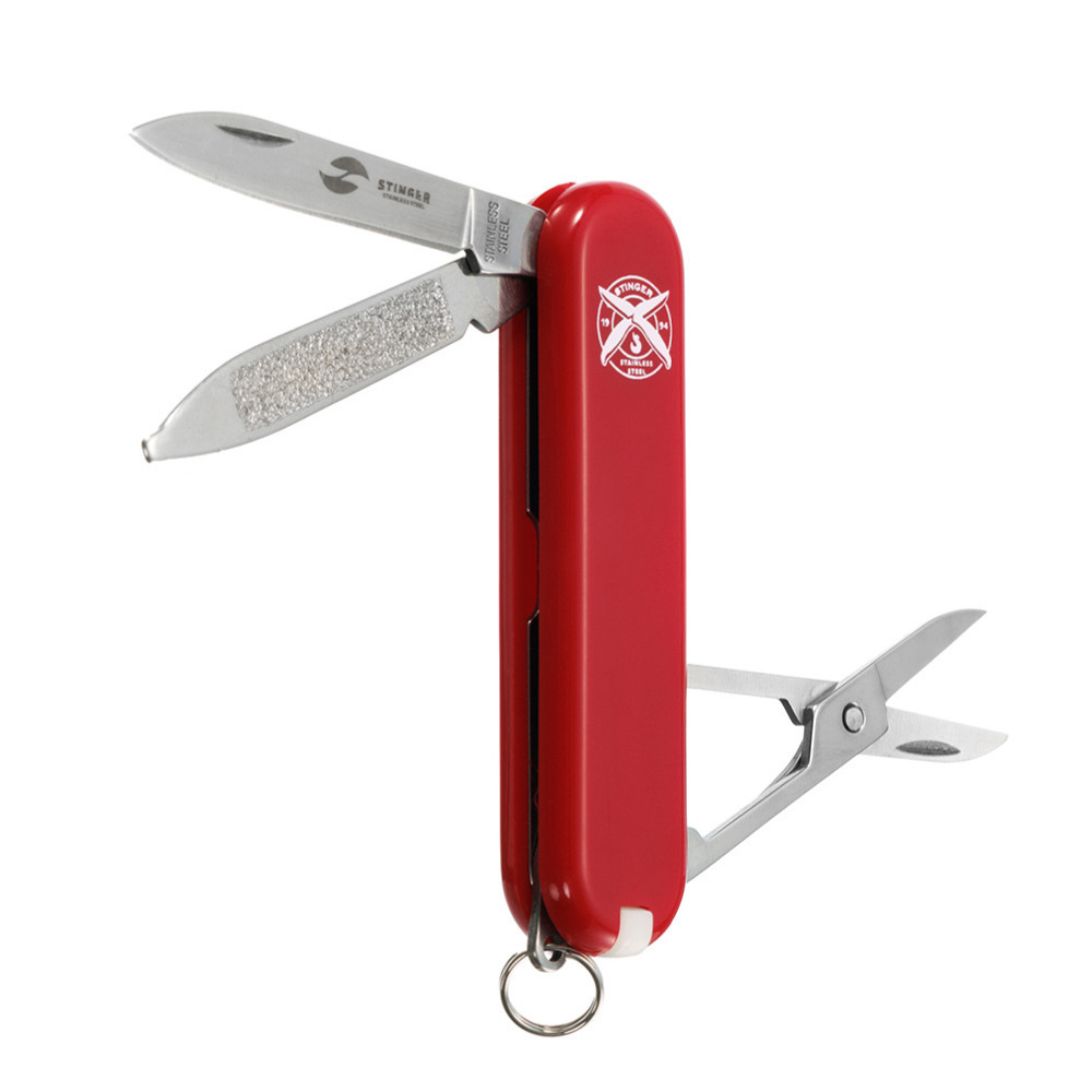 Нож перочинный Stinger 65 мм, 7 функций, рукоять ABS-пластик, красный