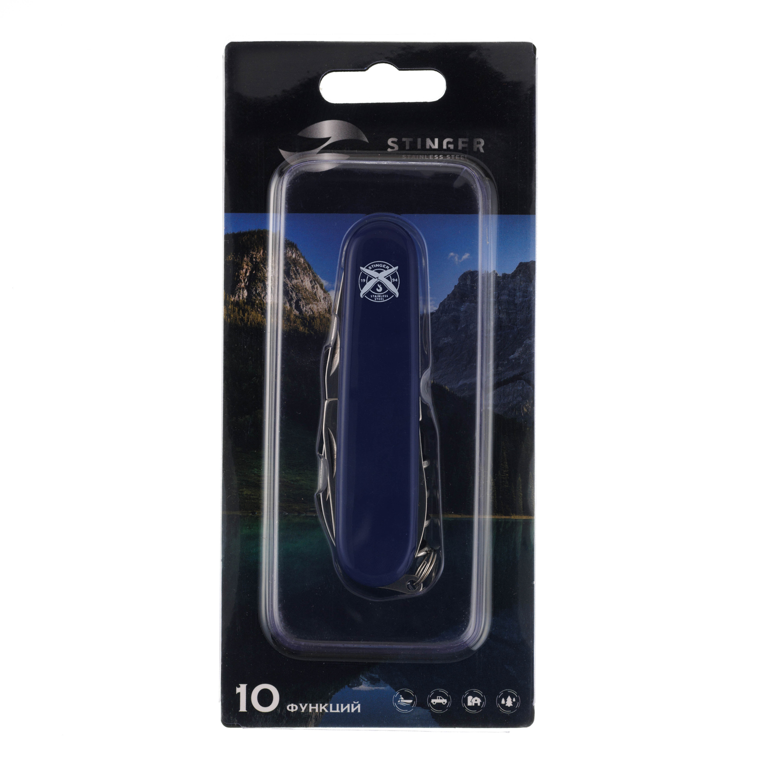 Нож перочинный Stinger 90 мм, 10 функций, синий, в блистере