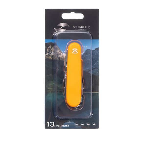 Нож перочинный Stinger 90 мм, 13 функций, оранжевый, в блистере